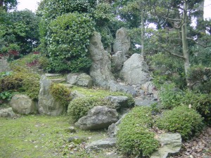 江戸時代に「西方極楽浄土の庭園」として造られた枯山水庭園。石組みの技法が優れています。県指定文化財。